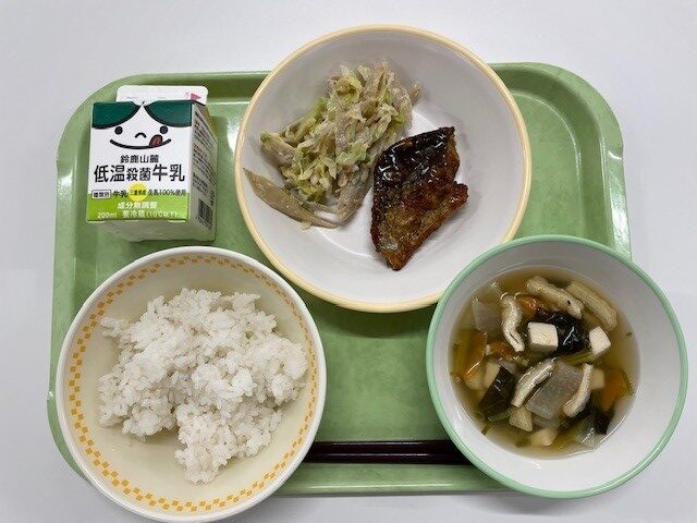 さわらの照り焼き風、ごぼうサラダ、すまし汁、米飯、牛乳