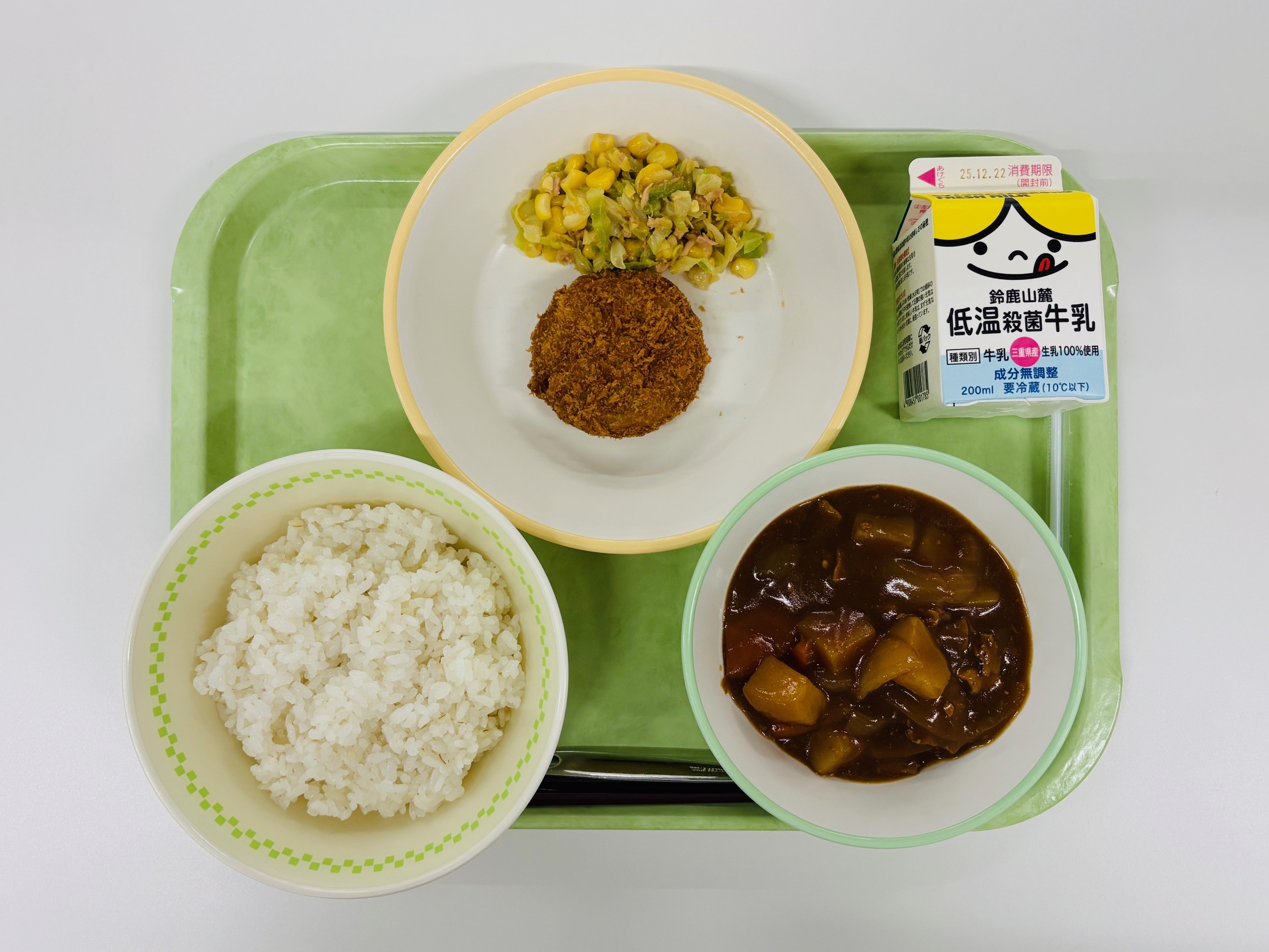 ハヤシライス、かぼちゃコロッケ、ゆず風味サラダ、牛乳
