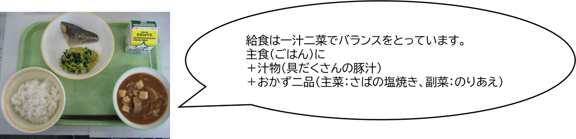 給食の汁ものは具だくさんなので、「一汁二菜」の形で栄養バランスを整えています。